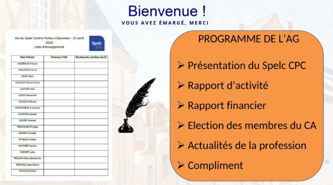25 mars 2026 : Assemblée générale du Spelc CPC à Poitiers